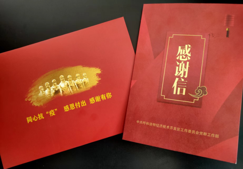 圖為開(kāi)發(fā)區黨工委黨群工作部為疫情防控工作人員發(fā)來(lái)的感謝信