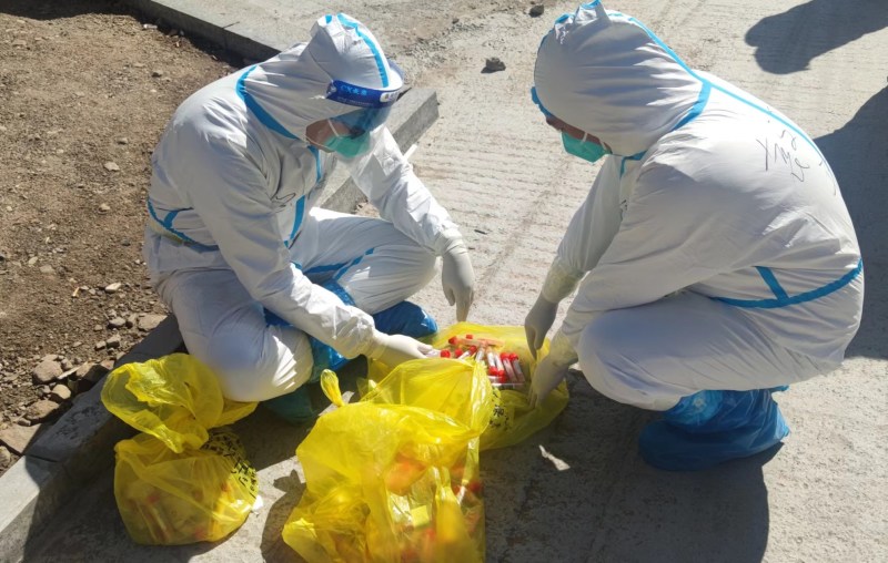 圖為開(kāi)投集團員工對核酸樣本進(jìn)行匯總整理