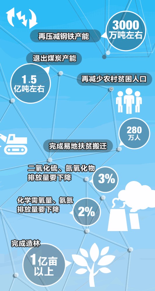 去產(chǎn)能:再壓減鋼鐵產(chǎn)能3000萬(wàn)噸左右,退出煤炭產(chǎn)能1.5億噸左右。